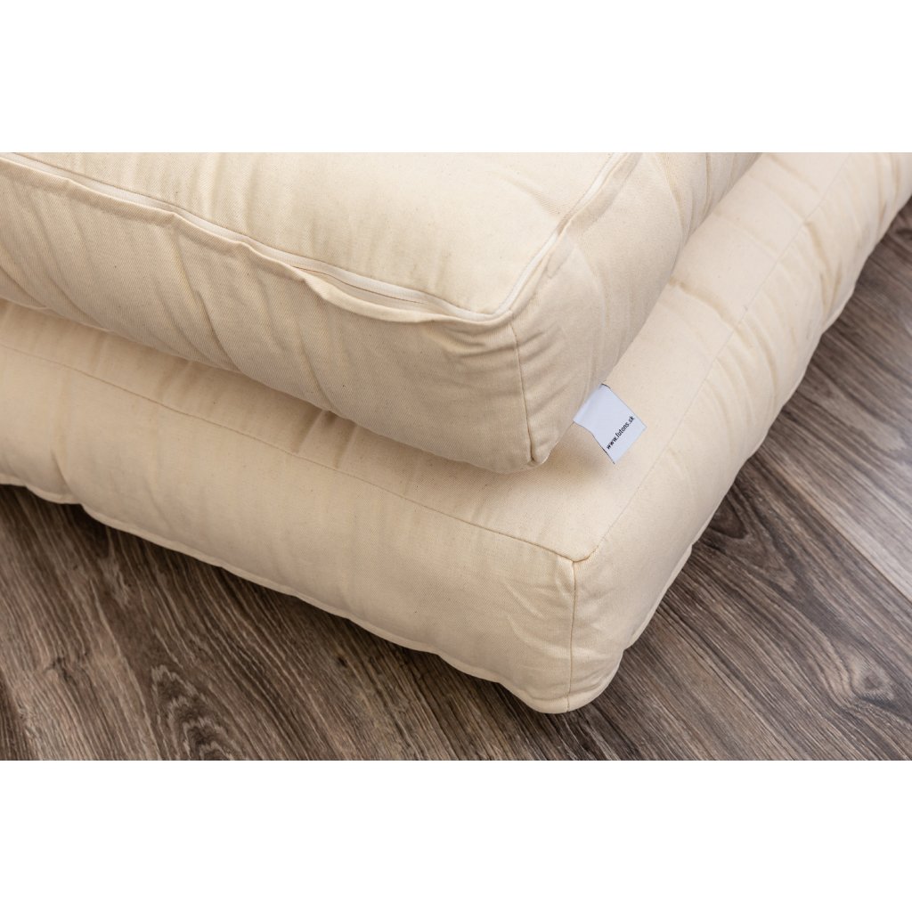 - Dlouhodobě tvrdší futon — po slehnutí cca 15 cm výšky
